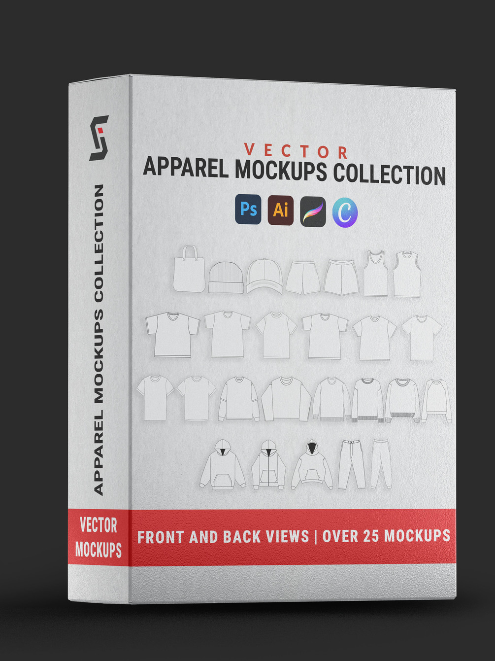 Elevate your clothing brand with our Vector Apparel Mockups Collection. This comprehensive collection offers over 25 expertly designed technical vector mockups, ideal for creating and producing custom apparel. Whether you're focusing on outerwear, t-shirts, headwear, bottoms, or hoodies, this versatile pack has you covered.